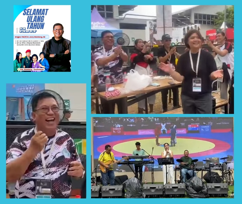 – Ketua KONI Sulawesi Utara (Sulut), Brigjen TNI (Purn) B Jerry Waleleng, merayakan Hari Ulang Tahun (HUT) ke-64 dengan penuh sukacita di GOR Kaliputu, Kudus. Perayaan ini terasa istimewa karena dihadiri oleh seluruh anggota Kontingen Sulut yang tengah berjuang di ajang PON, serta keluarga tercinta, termasuk istri dan putri beliau.