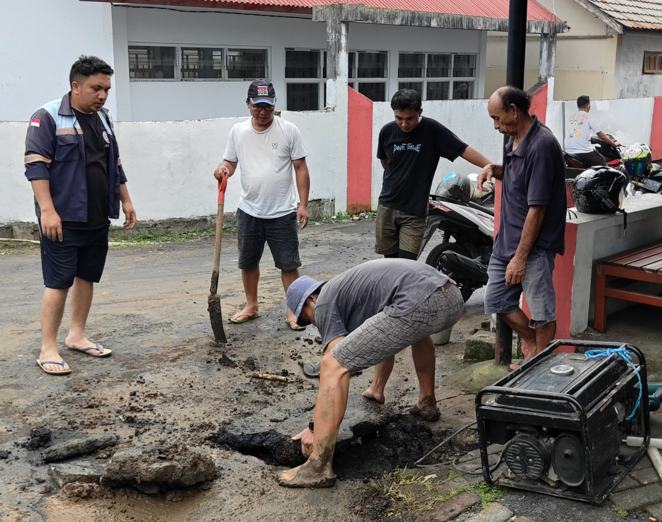 Terpantau perbaikan pipa air bersih di kompleks perempatan SD Katolik 2 Woloan Satu Tomohon Barat .