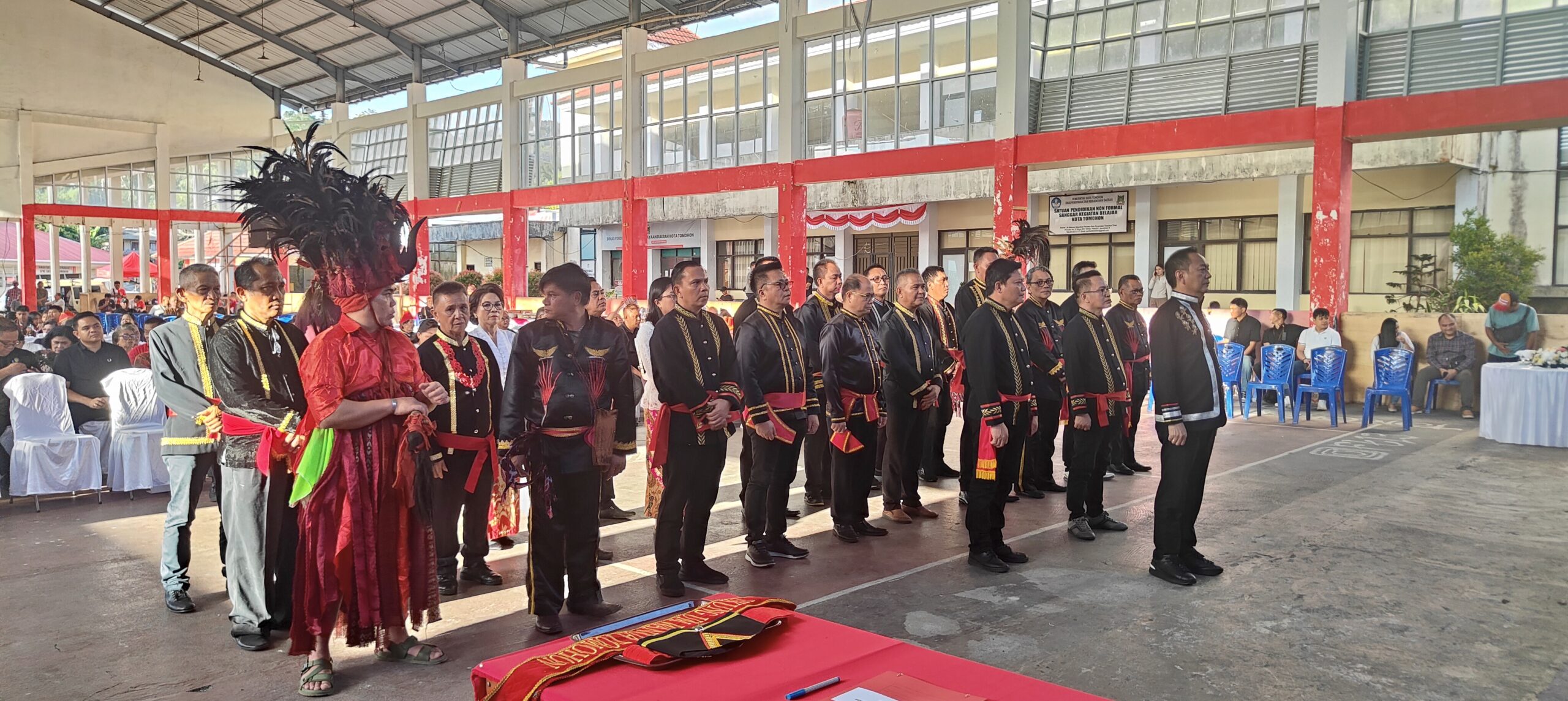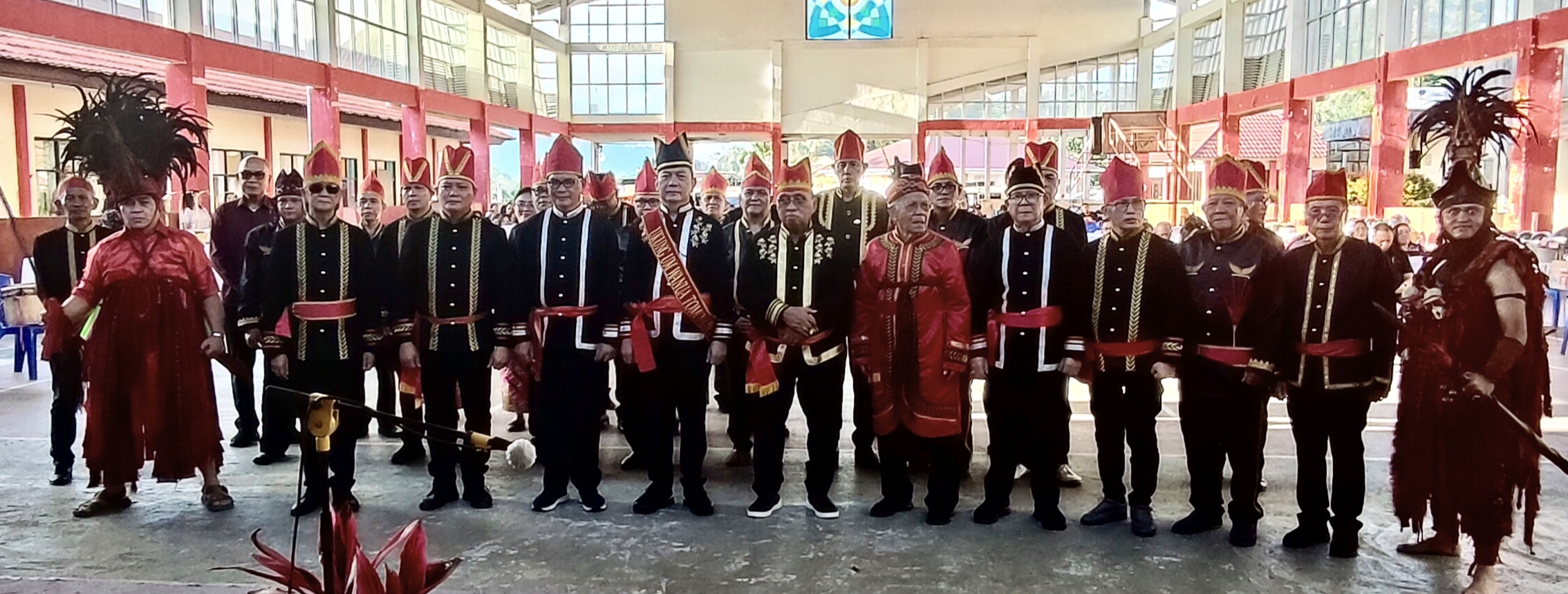 Kedatangan Robby Dondokambey, yang juga menjabat sebagai “Ukung Um Wanua Minahasa,” disambut meriah dengan iringan Tarian Kabasaran dan Musik Bambu, yang merupakan representasi budaya Minahasa.