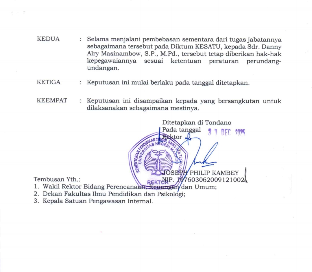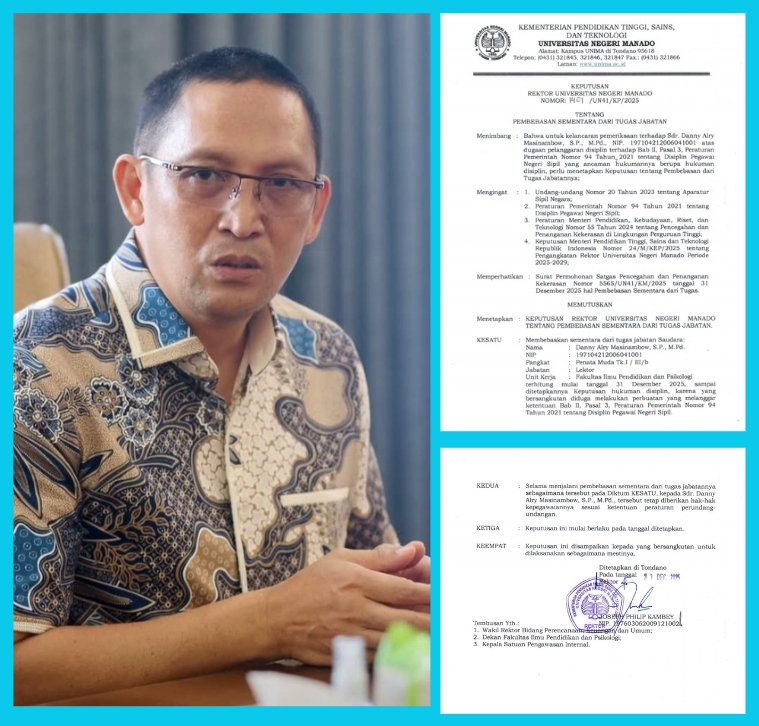 REKTOR UNIMA MENGELUARKAN SK PEMBERHENTIAN SEMENTARA DOSEN “DM” January 1, 2026by admin-239 Viewsby admin Inilah SK : Post Views: 239