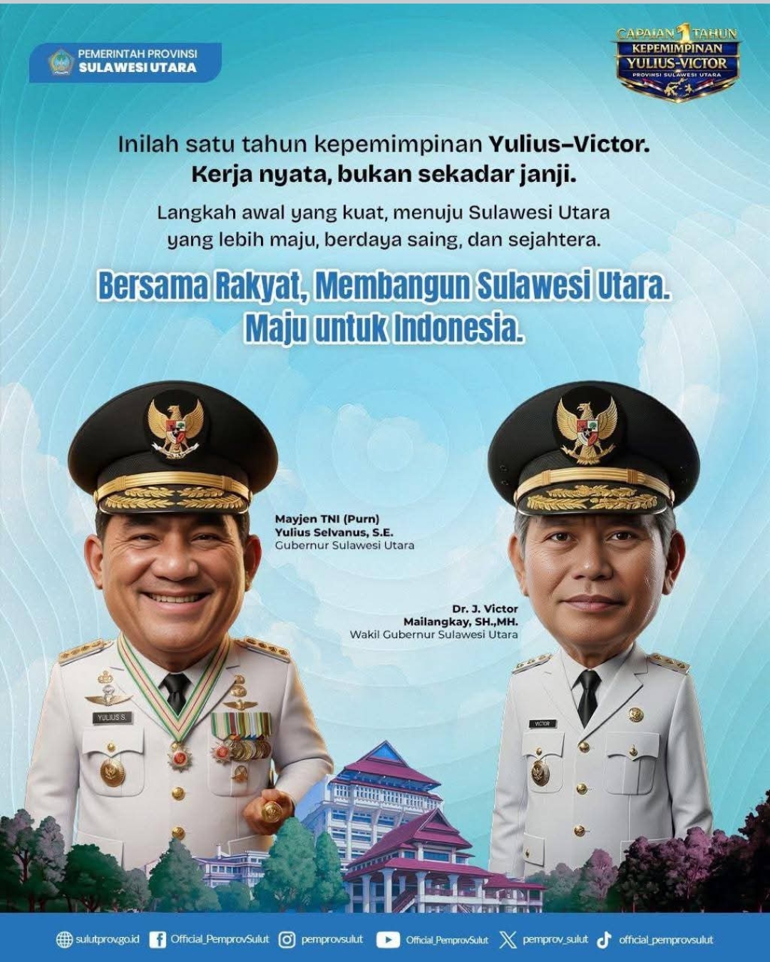 – Hari Kamis tanggal 5 Maret  2026 menjadi momen berharga bagi Gubernur Sulawesi Utara (Sulut) Mayjen TNI (Purn) Yulius Selvanus Komaling (YSK) dan Wakil Gubernur Victor Mailangkay, saat merayakan satu tahun kepemimpinan mereka di Graha Gubernuran Bumi Beringin, Manado. Di balik syukuran yang penuh haru ini, tersimpan komitmen kuat dalam menjalankan perintah khusus Presiden Prabowo Subianto yang menjadi landasan berbagai program pembangunan di Sulut selama setahun terakhir.