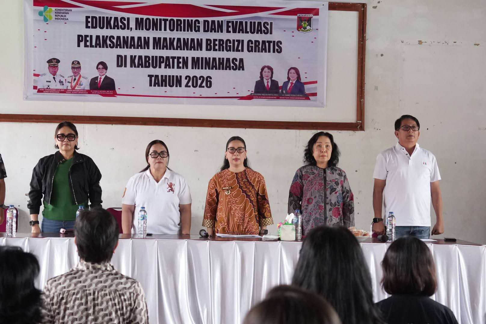 Fajarmanado.co.id — Wakil Bupati Minahasa, Vanda Sarundajang SS, menghadiri Monitoring dan Evaluasi Pelaksanaan Makanan Bergizi Gratis (MBG) Kabupaten Minahasa, yang digelar di Aula Pendidikan Kabupaten Minahasa, Jumat (13/3/2026).